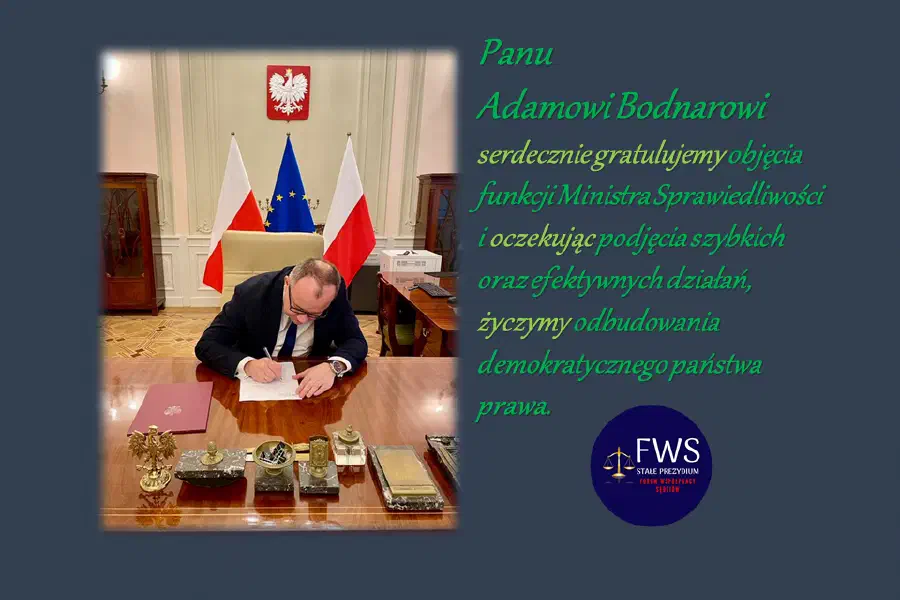 serdecznie gratulujemy objęcia funkcji Ministra Sprawiedliwości