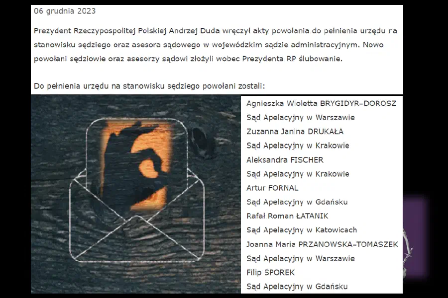 Listy sędziego Gąciarka do neosędziów powołanych 6 grudnia 2023 r. w wadliwej procedurze