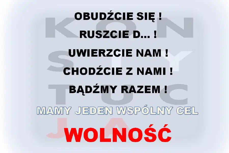 “Podajcie swoją dłoń , dajcie swoje pomysły byśmy RAZEM oddalili opresję. Byśmy wspólnie nie znajdowali się w opresji bo znajdujemy się w opresji jakiej nikt z NAS nie wyobrażał sobie po 1989 roku.”