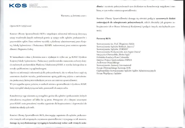 Stanowisko KOS w sprawie wycieku danych z platformy KSSiP