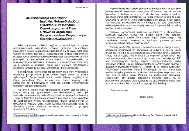 Pismo sędziów polskich do OBWE w sprawie wyborów prezydenckich