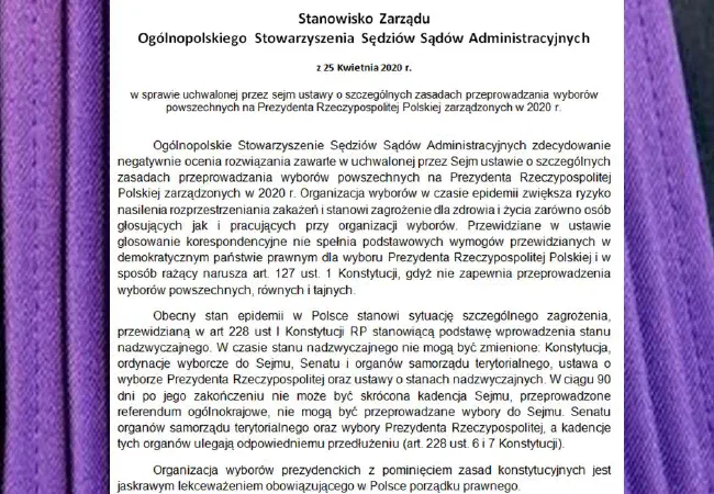 Stanowisko Zarządu Ogólnopolskiego Stowarzyszenia Sędziów Sądów Administracyjnych w kwestii wyborów prezydenckich
