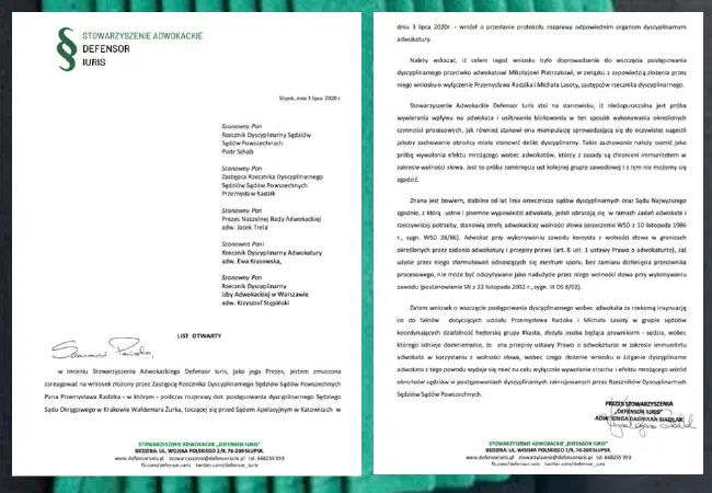 List otwarty dot. postępowania dyscyplinarnego Sędziego Sądu Okręgowego w Krakowie Waldemara Żurka.