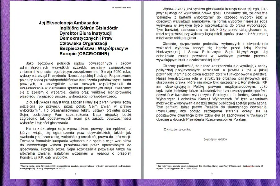 Pismo sędziów polskich do OBWE w sprawie wyborów prezydenckich