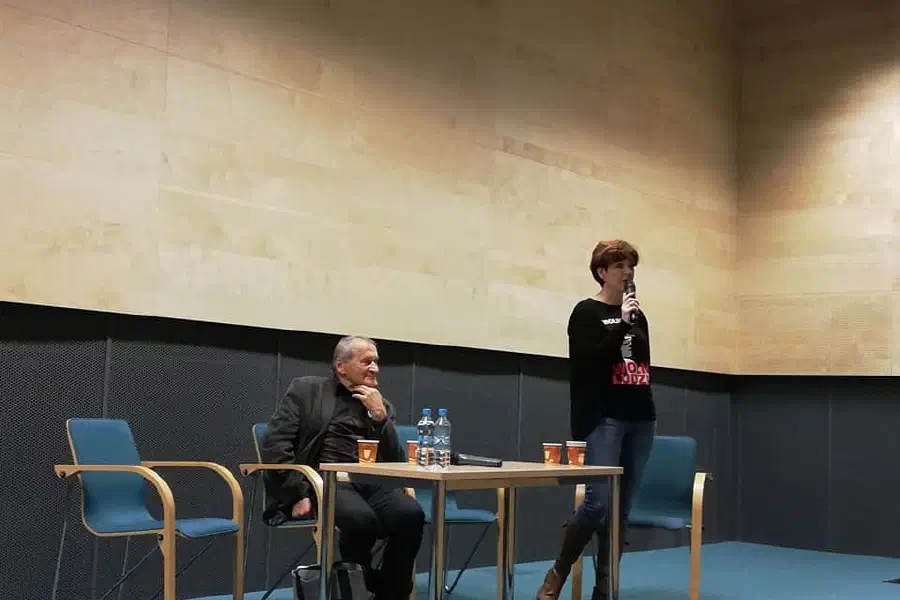 CAFE IUSTITIA dla młodzieży – Henryk Wujec. Spotkanie prowadziła sędzia Jolanta Jeżewska.