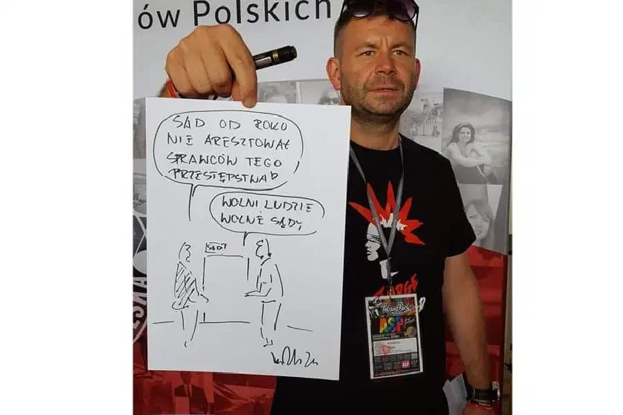 Na pewno zauważyliście, że na naszej stronie pojawiły się znakomite rysunki sędziego Arkadiusza Krupy przedstawiające otaczającą nas rzeczywistość widzianą „Ślepym Okiem Temidy”. Zgoda na publikację tych rysunków, a nawet rysunki tworzone specjalnie dla naszej strony, to jeden z wielu długofalowych efektów tegorocznej obecności „Iustitii” na festiwalu „Pol’and’Rock” w Kostrzynie nad Odrą. Redakcję strony informacyjnej sędziów łódzkich na festiwalu reprezentowała sędzia Katarzyna Wesołowska-Zbudniewek, której relację z tego niezwykłego wydarzenia będziecie mogli przeczytać na naszej stronie już za tydzień. Serdecznie zapraszamy! Na festiwalu był też oczywiście – jak rok temu - sędzia Arkadiusz Krupa z Sądu Rejonowego w Łobzie. I tak się zaczęło …. Bardzo się cieszymy i niniejszym przedstawiamy krótką prezentację Pana Sędziego: