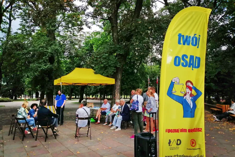 Przez całe wakacje, w prawie każdą niedzielę, w łódzkich i podłódzkich parkach urzędnicy i sędziowie z naszego okręgu byli do dyspozycji obywateli w ramach akcji edukacyjnej “Twój oSąd” organizowanej przez fundację: Łódzka Arka Demokracji. Opowiadaliśmy o naszej pracy, o liczbie spraw, która wpływa do sądów, o możliwości rozstrzygania sporów w drodze mediacji, o roli ławników, asystentów, referendarzy, o obowiązku stron przedstawiania dowodów. Przekonywaliśmy do dobrego zwyczaju czytania umów i wartości edukacji prawnej już od najmłodszych lat. Wskazywaliśmy na rosnącą świadomość Polaków w zakresie praw konsumenta czy pacjenta. Odpowiadaliśmy na pytania o różnego rodzaju absurdy prawne, a także co naszym zdaniem ułatwiłoby orzekanie i przyspieszyło bieg spraw sądowych. Mówiliśmy o trudnej sytuacji kadrowej wśród urzędników sądowych, ich niskich wynagrodzeniach i dużej odpowiedzialności. Przedstawialiśmy naszą ocenę dotychczasowej reformy, jej charakteru i celu oraz wprowadzane na koniec zmiany proceduralne, w tym w zakresie opłat sądowych w sprawach cywilnych. Przy okazji wyjaśnialiśmy zasady zwalniania z kosztów sądowych i dostępu do bezpłatnej pomocy prawnej. Wskazywaliśmy na zależność pomiędzy ilością przysługujących środków odwoławczych, w tym nadzwyczajnych, a długością i pewnością rozstrzygnięć sądowych. Zastanawialiśmy się wspólnie z słuchaczami czy i kiedy lepsze są szybkie wyroki, a gdzie sprawiedliwy proces musi trwać dłużej.