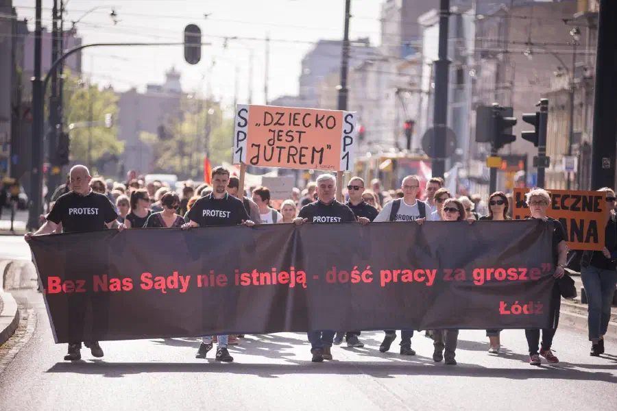 W cieniu naszego protestu i naszych działań trwają protesty pracowników administracji sądów i prokuratur. Nie jest to znacząca grupa społeczna z punktu widzenia władzy, więc można ją lekceważyć lub też prowadzić tzw. działania pozorne. Nasi pracownicy pozostają poza zainteresowaniem mediów, nie mają silnych związków zawodowych jak nauczyciele, którzy również rozpoczęli słuszny strajk w obronie własnej godności i w imię przywrócenia etosu zawodu nauczyciela. Informacja o ich strajku nie schodzi z czołówek serwisów informacyjnych. Wolne media przekazują dane o ich strajku każdego dnia. O strajku moich współpracowników nie słychać, a on przecież nie ustał. Codziennie o godzinie 12.00 przed Sąd Okręgowy w Łodzi wychodzą pracownicy administracji sądowej w geście sprzeciwu. Protest trwa od grudnia 2018r, a schemat działania przedstawicieli władzy jest ten sam jak przy akcji protestacyjnej nauczycieli. Podpisane zostało porozumienie związkami zawodowymi, które nie satysfakcjonowało pracowników. Pracownicy w wyniku osiągniętego porozumienia otrzymali już wcześniej zagwarantowane w budżecie podwyżki w kwocie 200 zł brutto. Tak, więc, po latach zamrożonego budżetu moja współpracownica otrzymała niecałe 150 zł podwyżki. Obecnie jej wynagrodzenie po 15 latach pracy to 3000 złotych brutto ze wszystkimi składnikami, w tym z dodatkiem stażowym, co daje kwotę netto około 2400zł. Pracownicy nadal protestują to ich krzyk rozpaczy, który przeszedł w niemy krzyk w cieniu innych protestów. Jednak nadal się nie poddają. Ponownie został wszczęty spór zbiorowy z pracodawcą, a sądy zostały oplakatowane. Odbywają się manifestacje. W samej Łodzi były ich już trzy i planowana jest kolejna. W marcu odbył się przemarsz pracowników pod kancelarię Prezesa Rady Ministrów pod hasłem „Ostatki u premiera”. Planowane są również kolejne działania. Pracownicy Sądu Okręgowego w Łodzi stworzyli też stronę na fb pod nazwą “Łódzkie Sądy - protest pracowników”, gdzie umieszczane są aktualne informacje o tym, co dzieje zarówno w naszym sądzie jak i w sądach w całej Polsce. W ostatnim czasie, właśnie na tejże stronie, rozpoczęto akcję pod nazwą “opowiedz mi swoją historię”. Pracownicy przysyłają swoje listy, w których opisują codzienną pracę w sądzie, na czym ta praca polega, ile zarabiają, jaką ponoszą odpowiedzialność. Czytałam te listy i są one naprawdę poruszające. Przypomina mi się tekst piosenki grupy „Czerwono -Czarni” „*Opowiedz mi swoją historię. Tak będzie najlepiej, sam wiesz (..) Opowiedz mi swoją historię. Nim kiedyś zabraknie Ci słów”*Nawet dla mnie, która zna pracę sądów, niektóre z opisanych historii są tak wzruszające, że naprawdę brakuje już słów. Piszą pracownicy administracyjni, którzy muszą niekiedy „obsłużyć” kilkaset spraw z referatu sędziego i nie ma wtedy czasu na zastanawianie się, a każdą czynność trzeba podjąć „na wczoraj”. Do tego należy dodać stres, czasem przypłacony depresją.